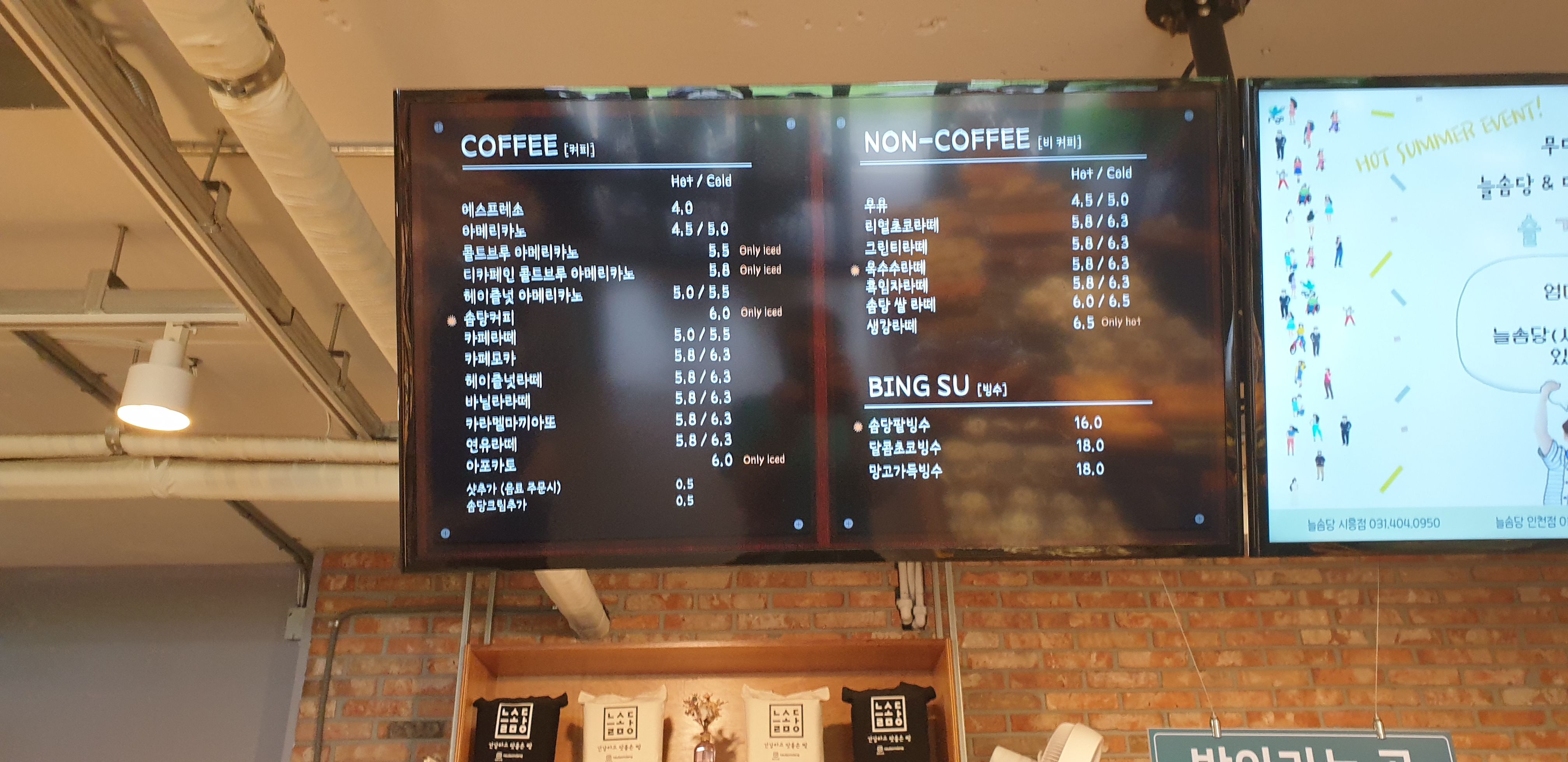 늘솜당 메뉴입니다.